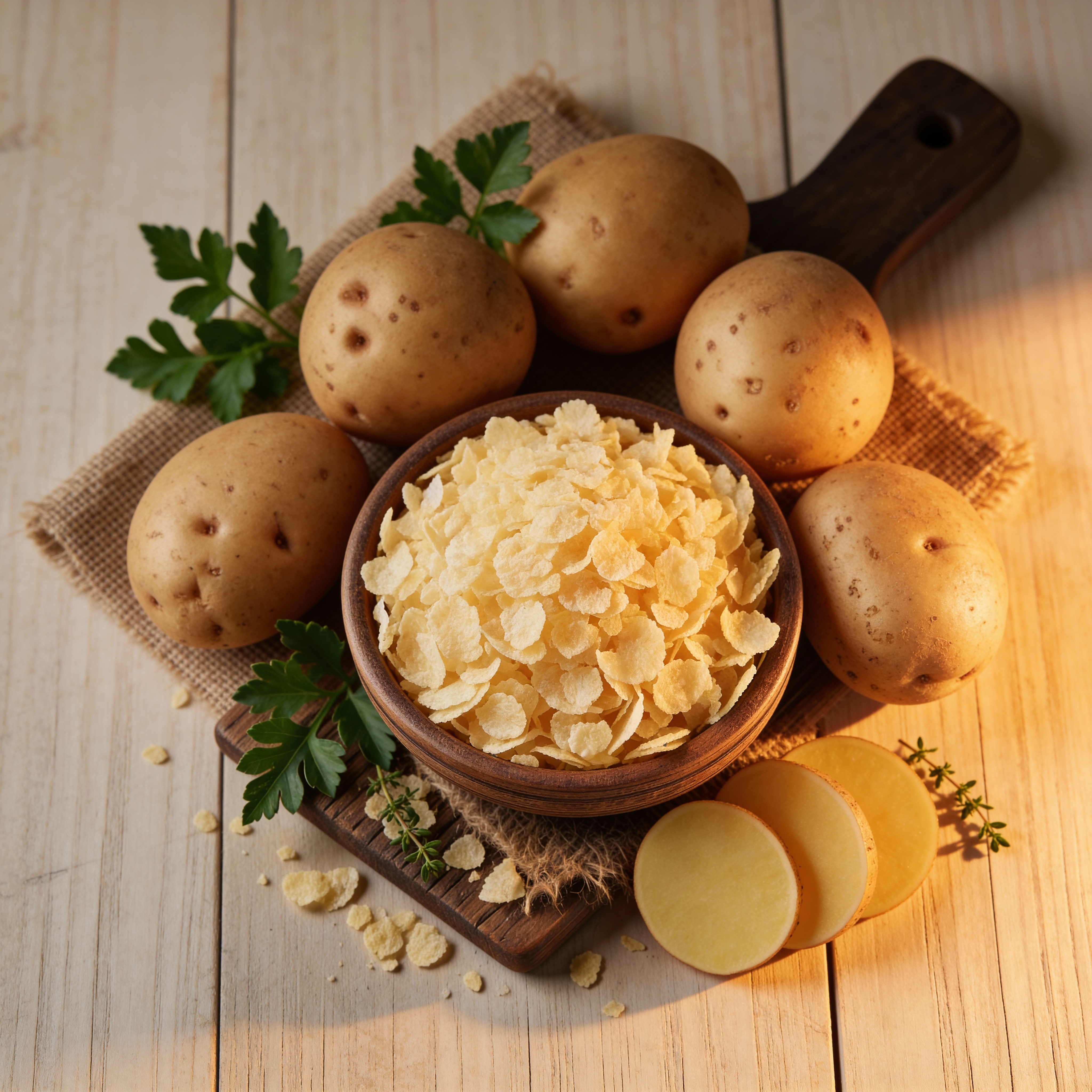 Our Potato Flakes are made from **real, sun-dried potatoes** that are carefully dehydrated to preserve freshness, flavor, and nutrients.